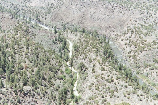 The river on the right is the Rio Grande, while the one on the left is the Red River. They converge in the middle. We hiked down to it. It is about 1 1/2 miles out and 800 ft down from where we took this picture.